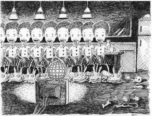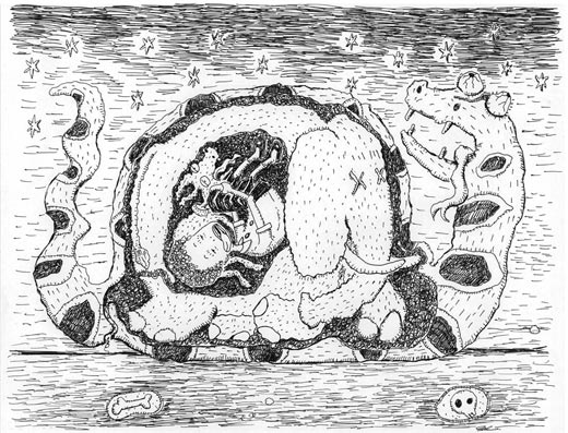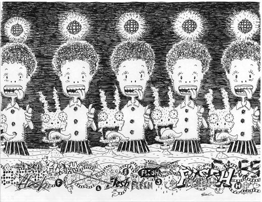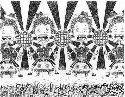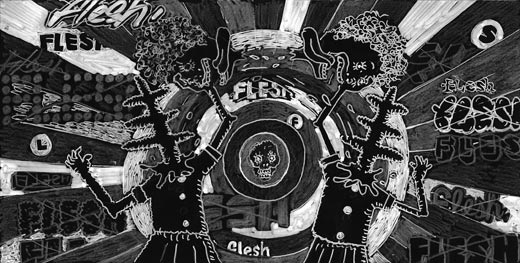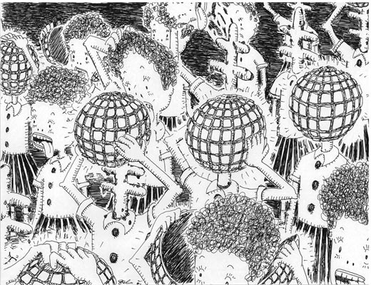 white ball-point pen, white pencil and poska on paper
